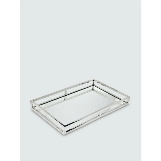This decorative polished design features a mirrored base. This large tray is a modern take on your everyday flatware caddy.