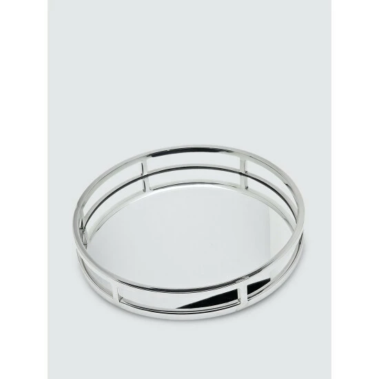 This decorative polished design features a mirrored base. This round tray is a modern take on your everyday flatware caddy.
