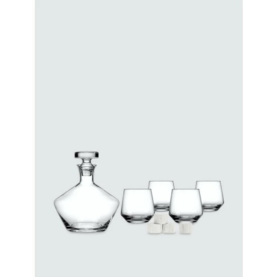 - Dimensions: 6.97″ L x 6.97″ W x 8.19″ H Decanter, 2.91″ L x 3.74″ W x 3.54″ H Dof