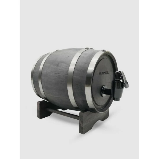 Raise a toast and roll out the good times with this whiskey barrel acts as a refined drink dispenser.