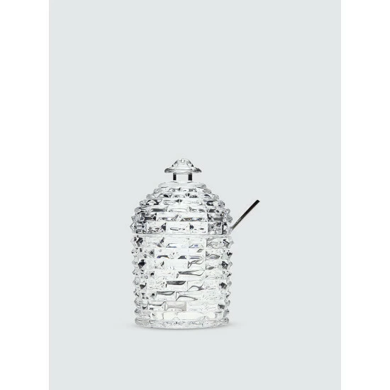A charming addition to your breakfast nook, this crystal glass beehive-inspired jam jar offers a whimsical twist on a tabletop essential.
