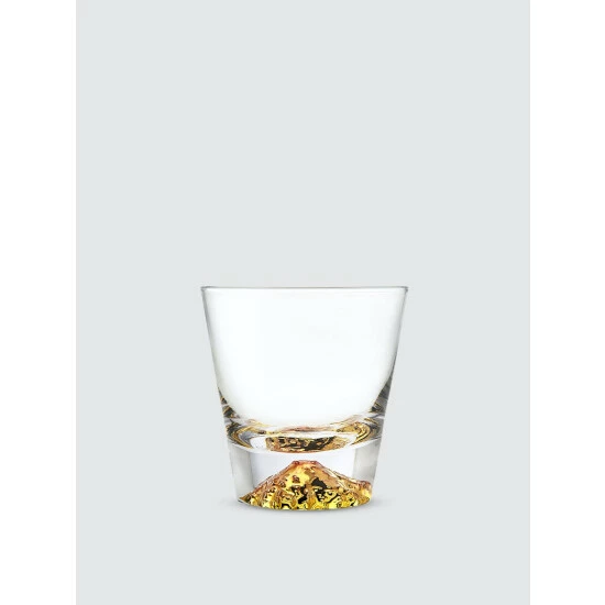 The clear glass on these Double Old Fashion Glasses tapers down to a hand-painted gold luster base. This sturdy, heavyweight glassware is great for everyday use or formal entertaining.