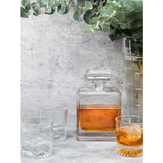 This beautifully crafted decanter has a classic squared-off profile and brilliantly showcases fine whiskey, bourbon and scotch.