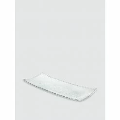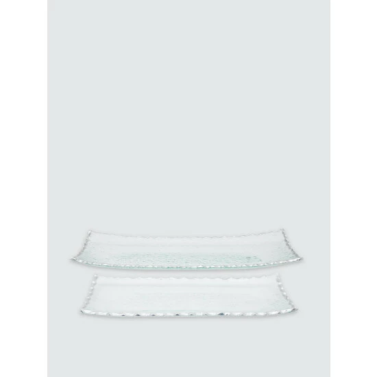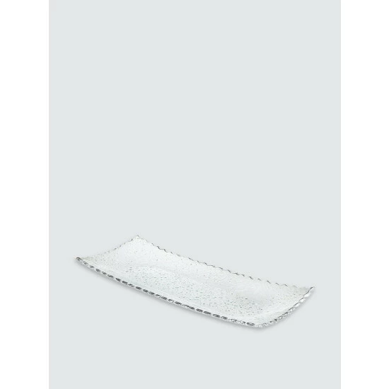 Elevating the look of any table setting, this textured glass platter features a textured design with a handpainted silver edge.
