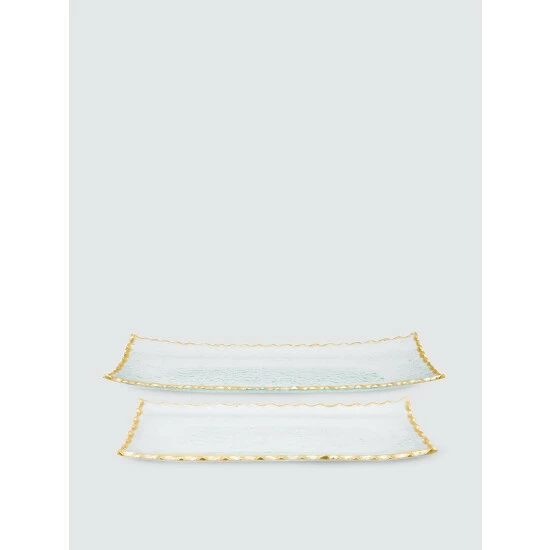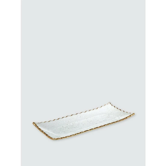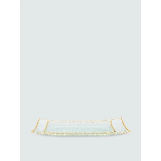 Elevating the look of any table setting, this textured glass platter features a textured design with a handpainted gold edge.