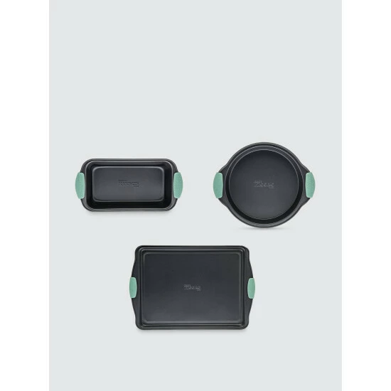- Dimensions: 1.2″ W x 13″ L x 11″ H Baking Sheet, 8″ L x 4.5″ W x 2.3″ H Loaf Pan, 8″ D Cake Pan