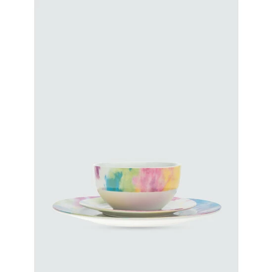 Bring color to your table setting with this dinnerware set, featuring a prism watercolor tie-dye pattern. You can pile this plate high with your favorite foods and it’s perfect for breakfast, brunch, lunch or dinner.