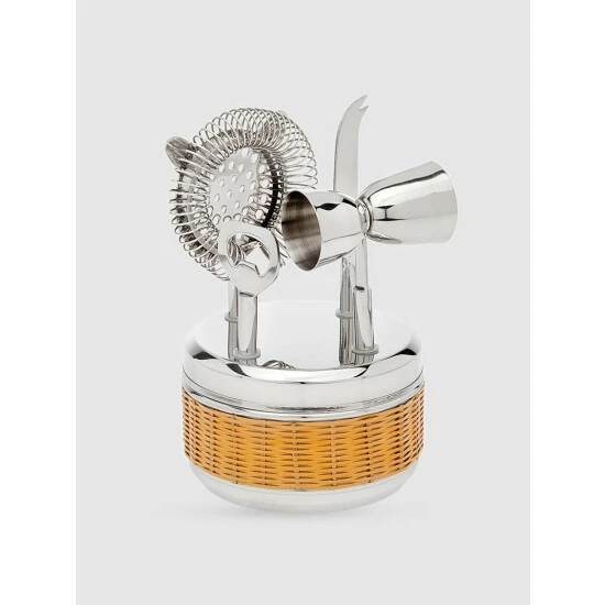 Enjoy the fresh, modern look of this handwoven rattan detailing.