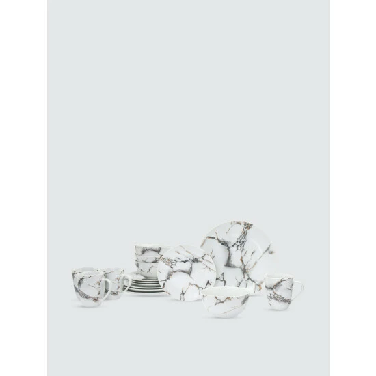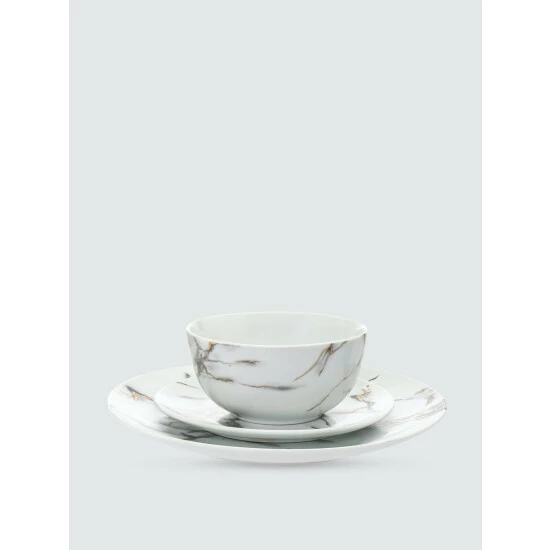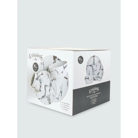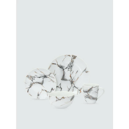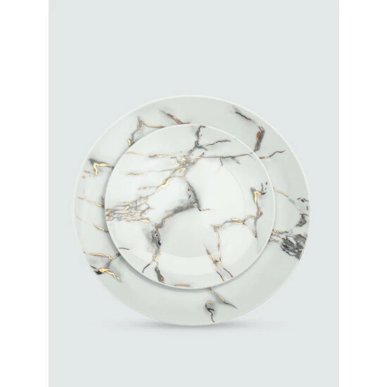 Inspired by the Italian Carrara with the added touch of metallic rose gold veining, this simple yet elegant dinnerware set is perfect for everyday use or formal dining.