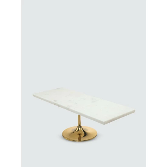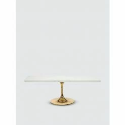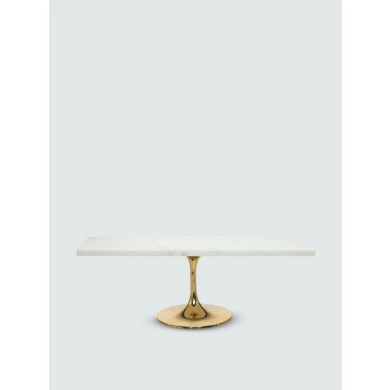 This dessert stand has a classic look of marble decor with a brass inlay for a modern touch. They were inspired by the clean line design of Manhattan streets.