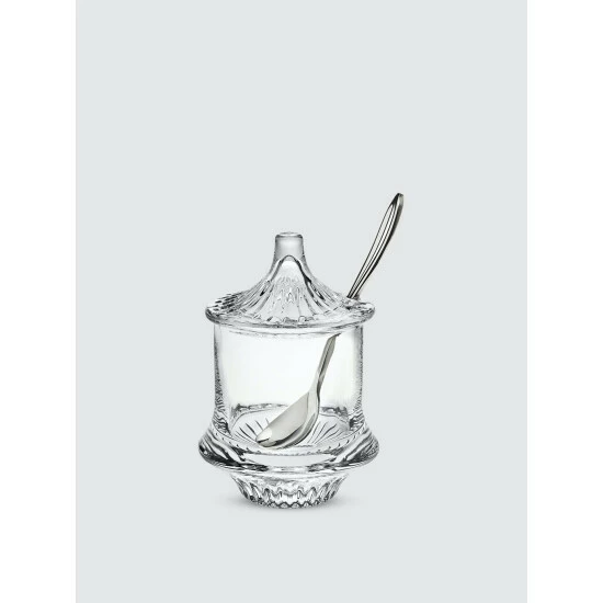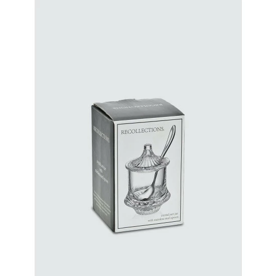 Serve up honey, jam, or candy in this simple style crystal jar and spoon set.
