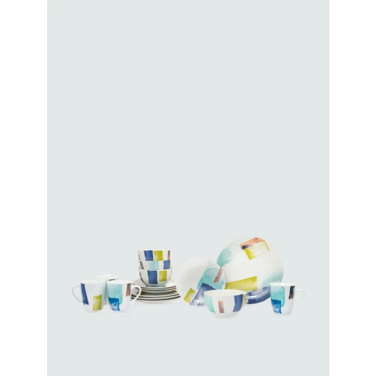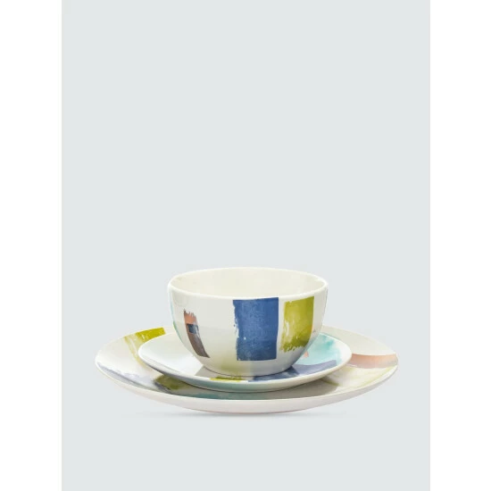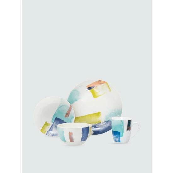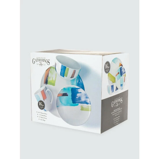 Painterly patterns are accented with copper leafing that’s treated for everyday use of this dinnerware set. This set will instantly dress up any table, whether for everyday dinners or special occasions.