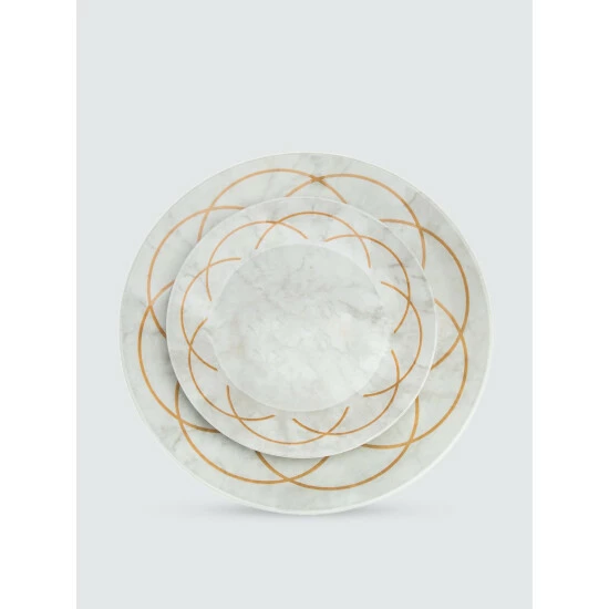 This opulent marble design creates a breathtaking table setting. This luxurious place setting will make any meal feel like a five-star experience.