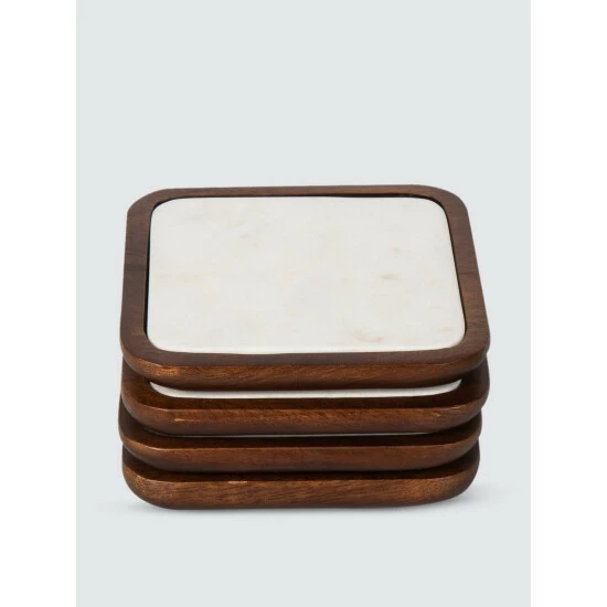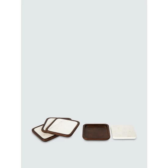 These coasters were handcrafted from polished white marble and natural acacia wood, a versatile design perfect for parties and gatherings.