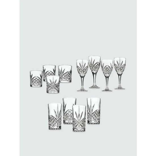 This collection is a celebration of the long history of crystal cut glass. The brilliantly cut pattern creates a unique design that makes these glasses a refined addition to your home.