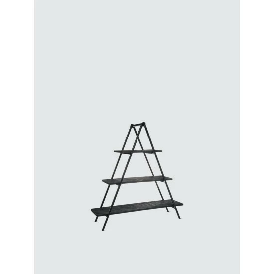 This tall triangular serving stand features three varying shelves for food or collectibles. It provides the perfect rustic aesthetic to your serving display.